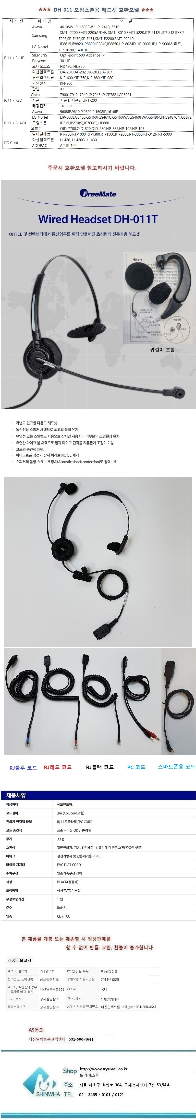 DH-011T 옵션 선택 RJ11 블루 RJ11 레드 RJ11 블랙 PC CORD 스마트폰용코드