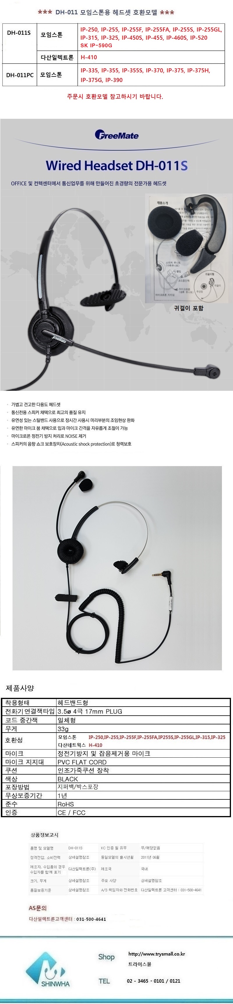 > 재고당일발 다산일렉트론 DH-011S DH011S 모임스톤IP용 헤드셋 정품